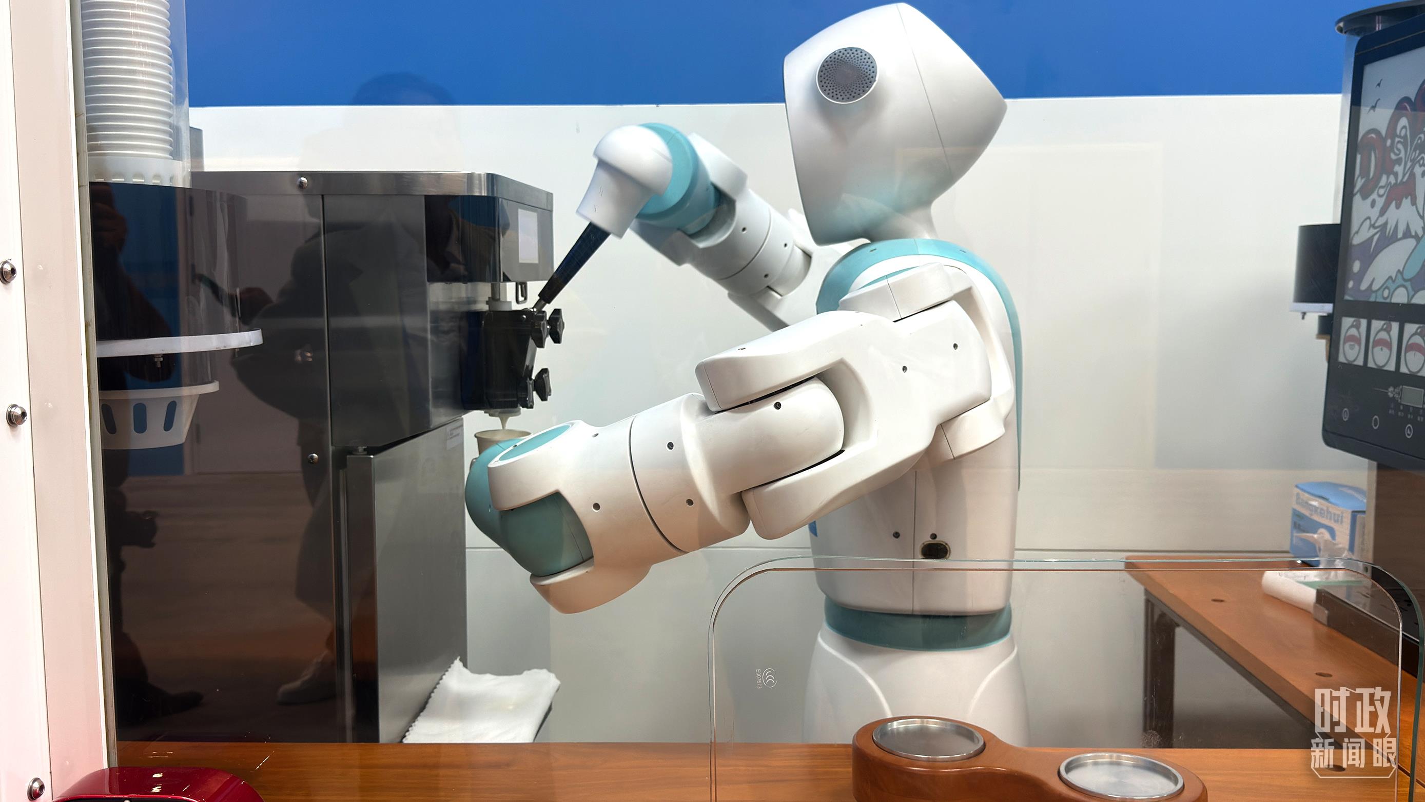 △峰會新聞中心的智能機(jī)器人正在制作冰淇淋。(總臺央廣記者張永鵬拍攝)