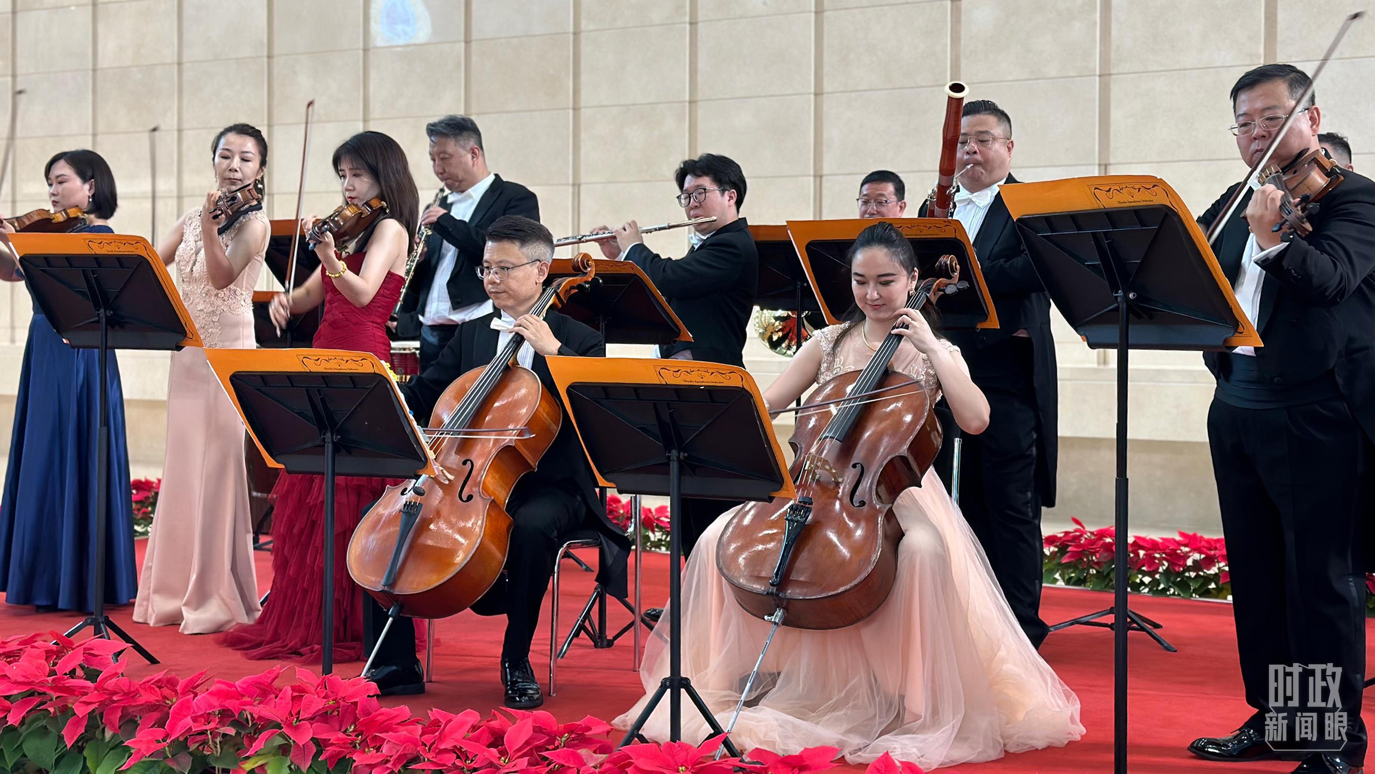 △天津交響樂團(tuán)演奏與會各國知名樂曲。(總臺央視記者盧心雨拍攝)