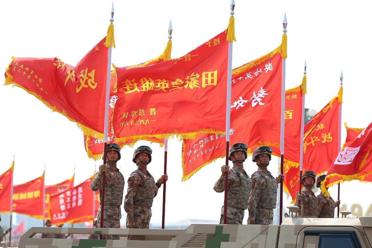 80面抗戰英模部隊榮譽旗幟組成戰旗方隊