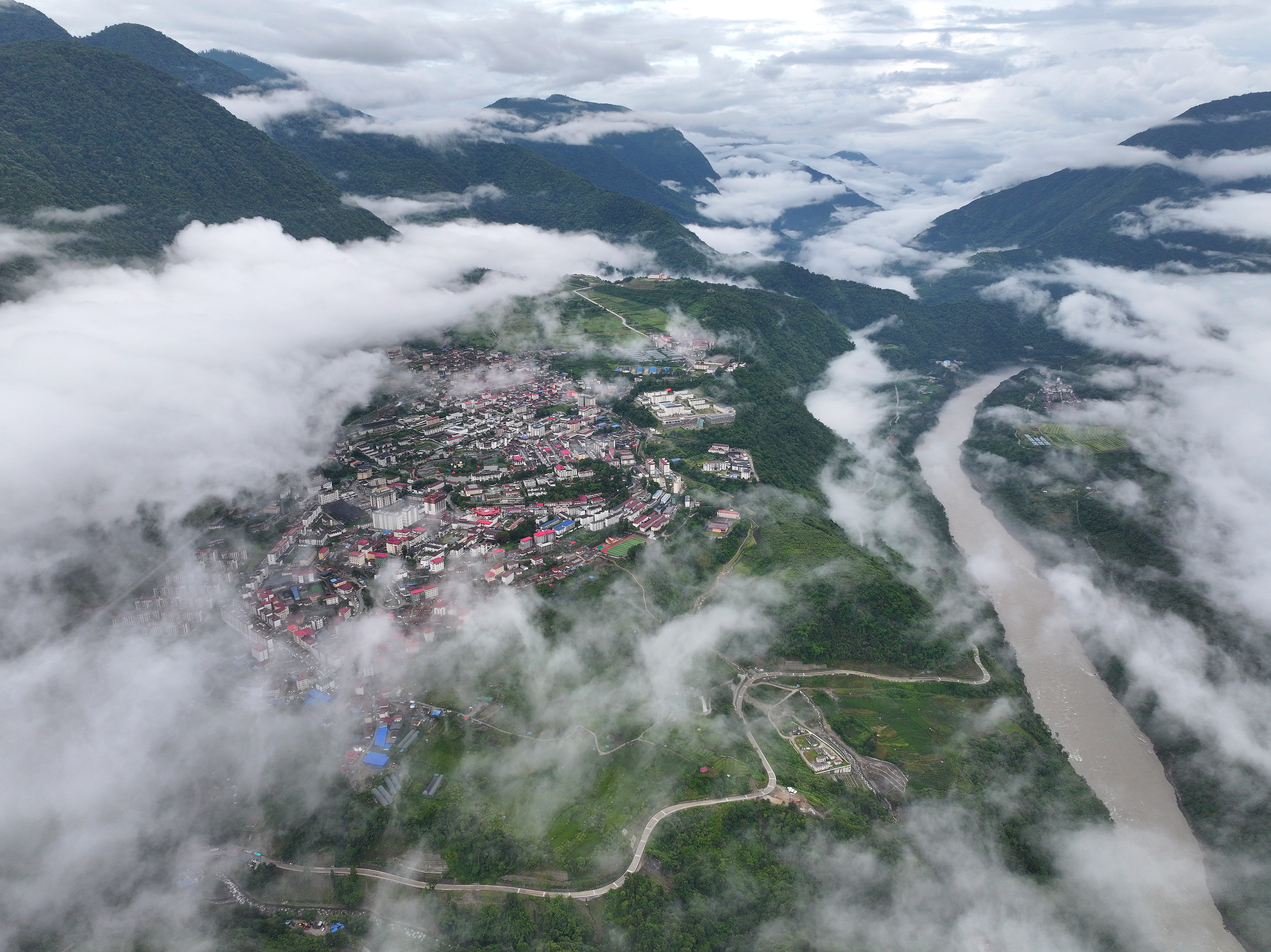 △2025年7月29日,西藏自治區(qū)林芝市墨脫縣城云霧縹緲。城市、山巒與蜿蜒流淌的雅魯藏布江相互映襯,宛如一幅美麗的生態(tài)畫卷。
