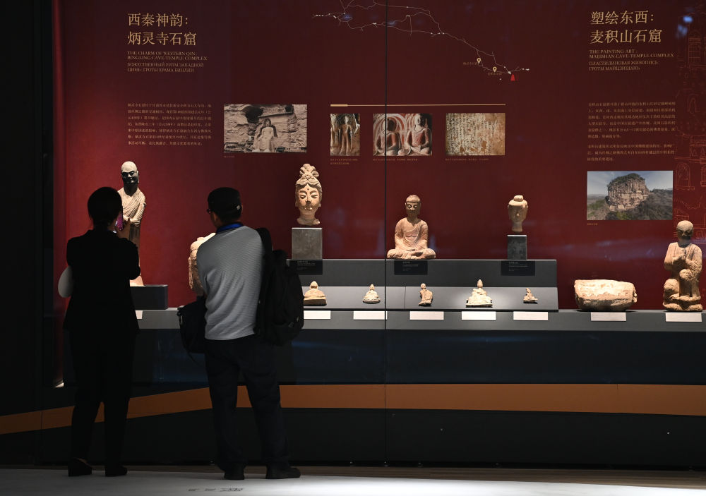 2024年5月18日,觀眾在陜西歷史博物館參觀“從長安出發:絲路申遺成功十周年主題展”。展覽集中展出中國、哈薩克斯坦、吉爾吉斯斯坦三國的精品文物,涉及絲綢之路沿線的城市規劃、宗教信仰、商品貿易、藝術生活等方面,講述絲路沿線國家和人民在譜寫人類文明、續寫人類發展篇章中的艱難歷程和輝煌成果。