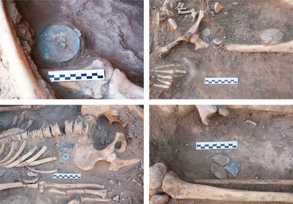 烏茲別克斯坦蒙扎鐵佩遺址M7隨葬品出土情況(拼版資料照片)。2024年,中烏聯合考古隊在蒙扎鐵佩遺址考古發掘取得了重要收獲。2025年2月,“中國社會科學院考古學論壇·2024年中國考古新發現”在北京中國歷史研究院舉行。論壇上公布了由中國社會科學院考古研究所中亞考古隊參與發掘的烏茲別克斯坦蒙扎鐵佩遺址考古成果。新華社發(考古雜志社供圖)