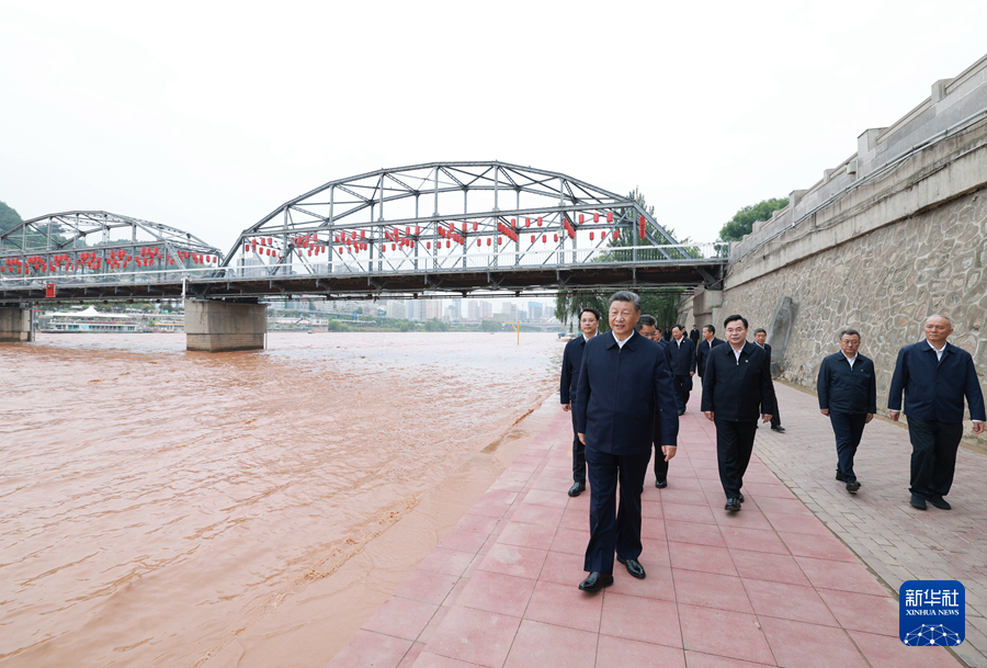 9月10日至13日,中共中央總書記、國家主席、中央軍委主席習近平在甘肅考察。這是11日下午,習近平在黃河蘭州中山橋段考察。