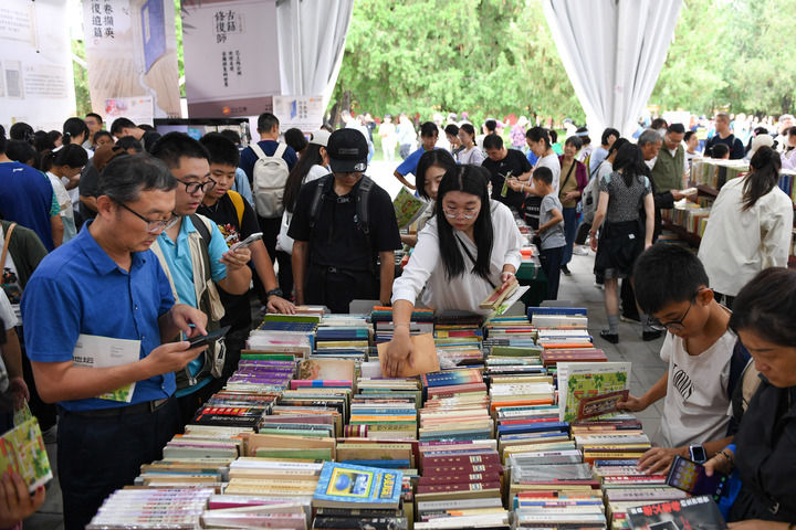 2024年9月15日,人們在“我與地壇”北京書市上選購舊書。新華社記者 陳鐘昊 攝