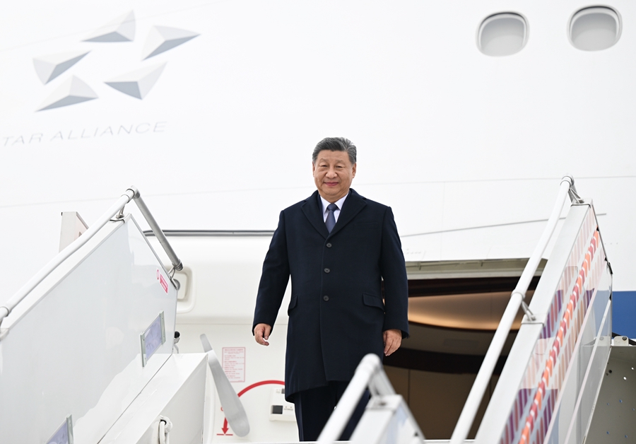 當地時間10月22日中午,國家主席習近平乘專機抵達喀山,應俄羅斯聯邦總統普京邀請,出席金磚國家領導人第十六次會晤。新華社記者 謝環馳 攝