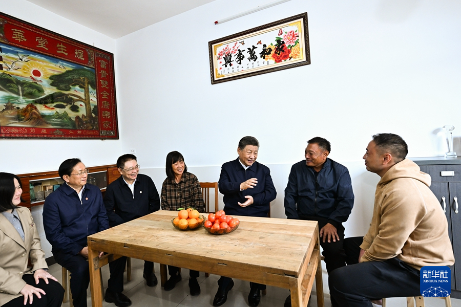11月4日至6日,中共中央總書記、國家主席、中央軍委主席習近平在湖北考察。這是5日上午,習近平在咸寧市嘉魚縣潘家灣鎮四邑村村民熊成龍家,同一家人圍坐在一起拉家常。