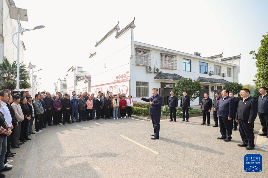 11月4日至6日,中共中央總書記、國家主席、中央軍委主席習近平在湖北考察。這是5日上午,習近平在咸寧市嘉魚縣潘家灣鎮四邑村考察時,同村民們親切交流。
