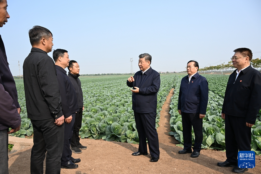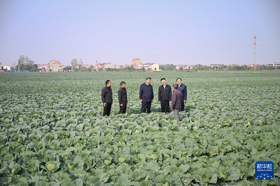11月4日至6日,中共中央總書記、國家主席、中央軍委主席習近平在湖北考察。這是5日上午,習近平在咸寧市嘉魚縣潘家灣鎮十里蔬菜長廊考察。