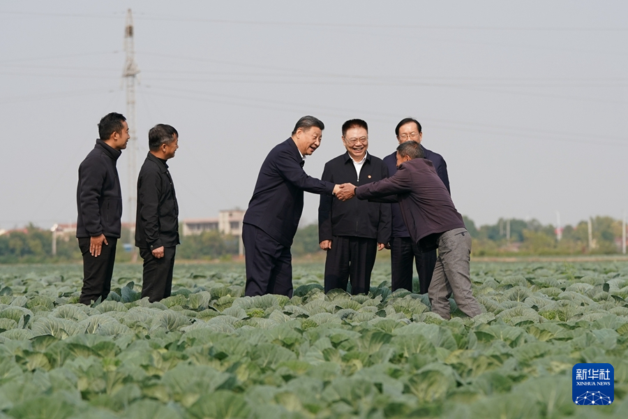 11月4日至6日,中共中央總書記、國家主席、中央軍委主席習近平在湖北考察。這是5日上午,習近平在咸寧市嘉魚縣潘家灣鎮十里蔬菜長廊考察時,同菜農親切交流。