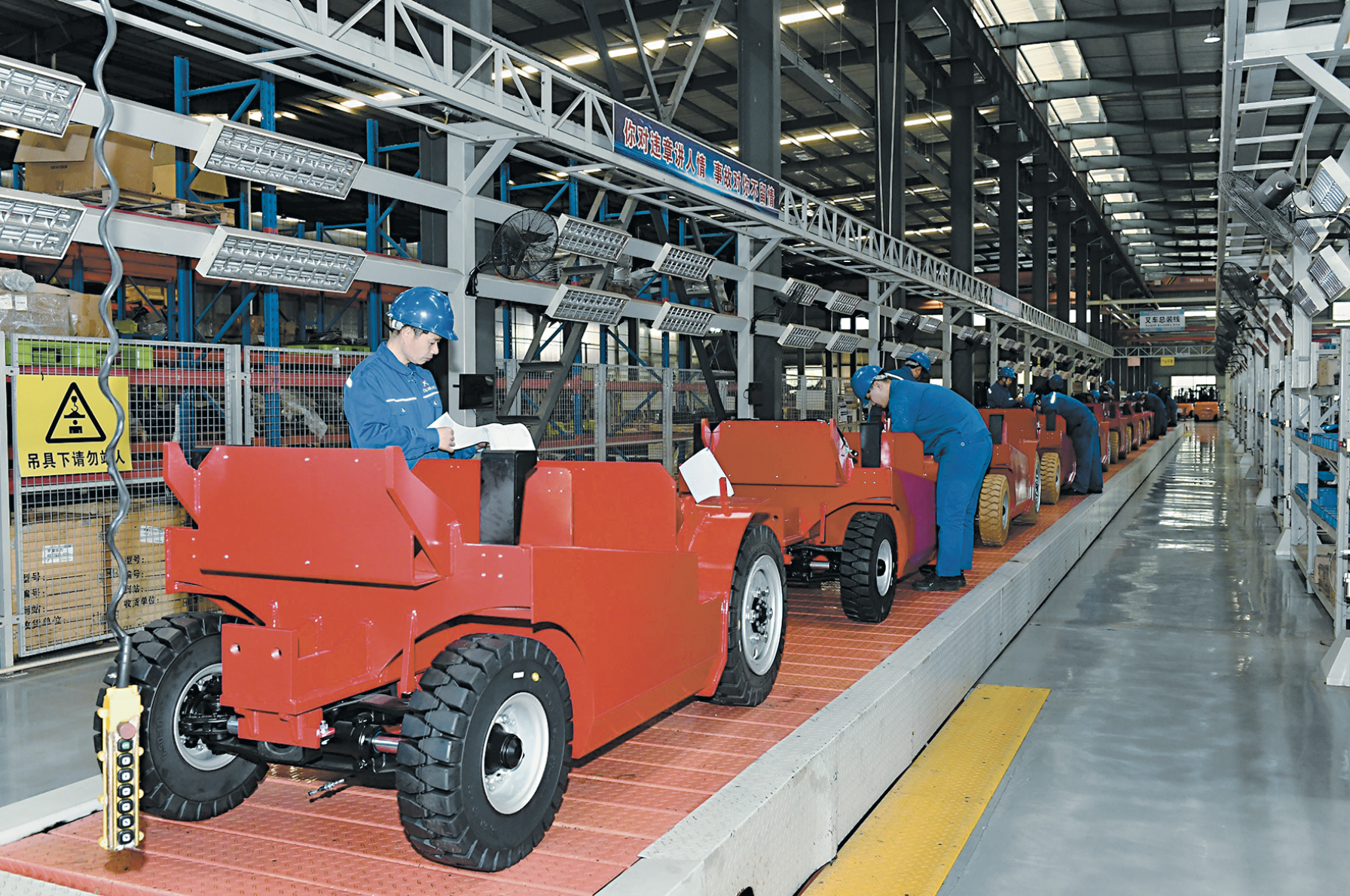 11月21日,鄆城縣山東恒基集團股份有限公司裝配生產線,智能電動叉車一字排開,工人在有序作業,車間內一派繁忙的生產景象。據悉,該公司具有鑄鋼、鍛造、精密加工、理化檢測等完整的生產線,擁有各類現代化生產加工設備100多臺套,產品暢銷全國,并出口國外。我市把企業智改數轉作為提振工業經濟的重要抓手,支持引導企業加大技改投入,該公司緊跟市場發展形勢,對現有設備進行了全面升級并對生產工藝進行了提升改造,加快制造業向高端化邁進。