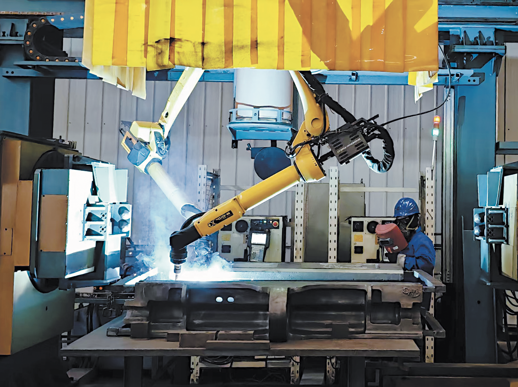 11月27日,單縣久鼎機械智能化生產(chǎn)裝備技改項目生產(chǎn)車間,智能化機械手臂正在進行焊接作業(yè)。據(jù)了解,該技改項目總投資10.2億元,于今年3月啟動實施,9月底完成并投產(chǎn)運營。項目采用智能化設(shè)備共80余臺(套),設(shè)備更新率達到90%以上,大幅提升了企業(yè)產(chǎn)品創(chuàng)新研發(fā)和生產(chǎn)制造水平,產(chǎn)品附加值大幅提高,年可增加銷售收入15億元以上。