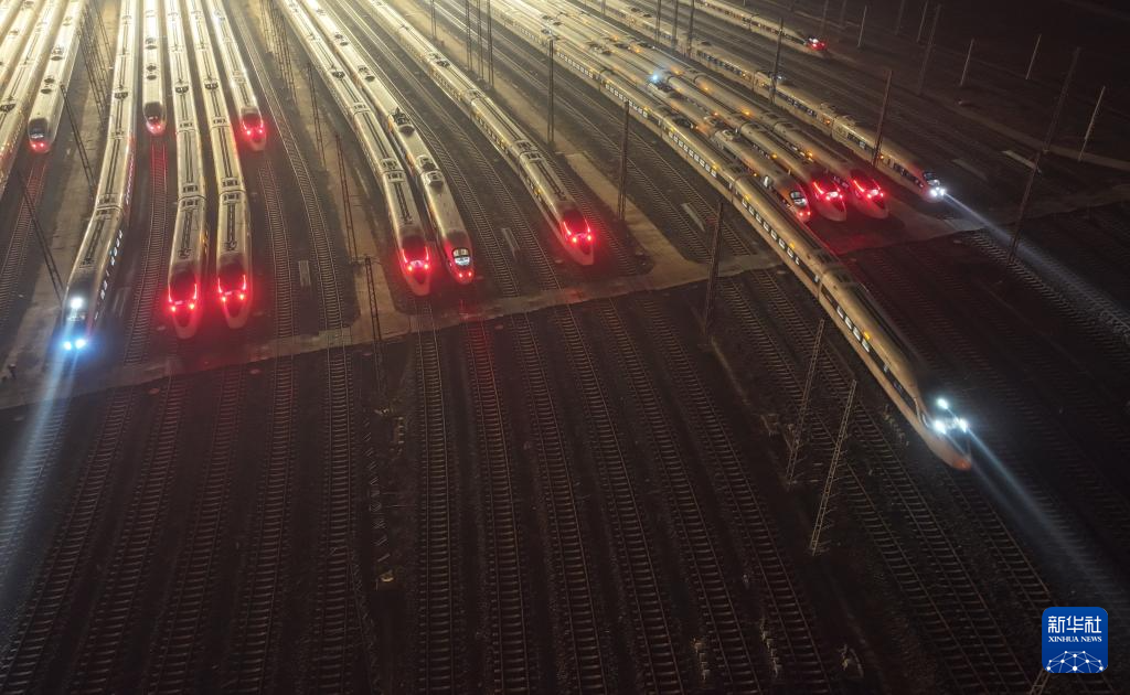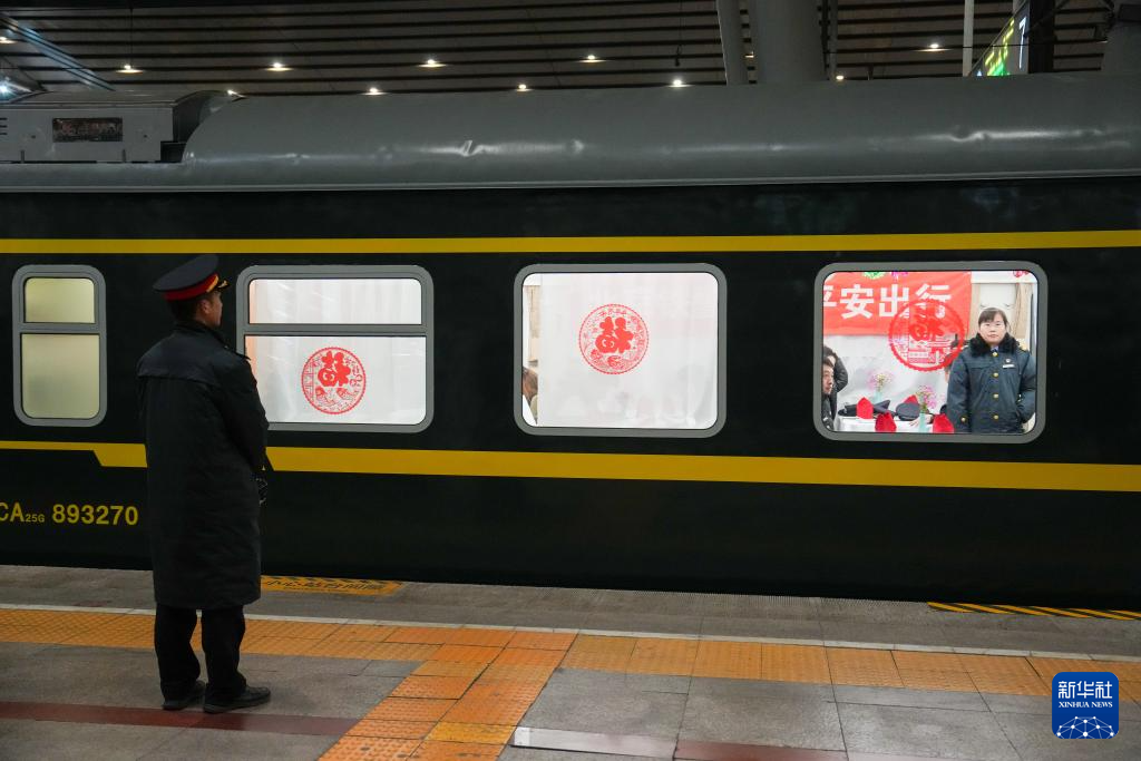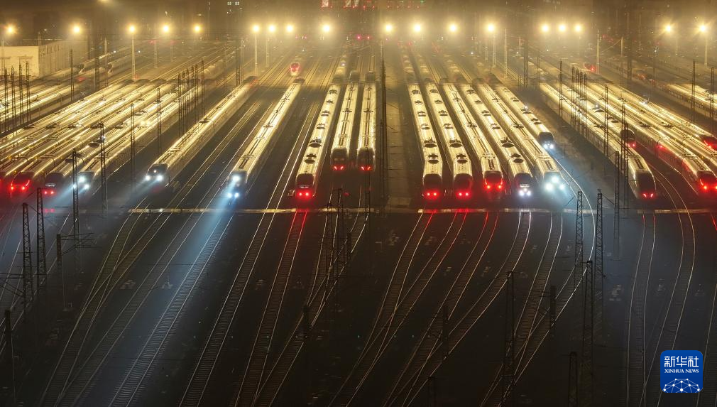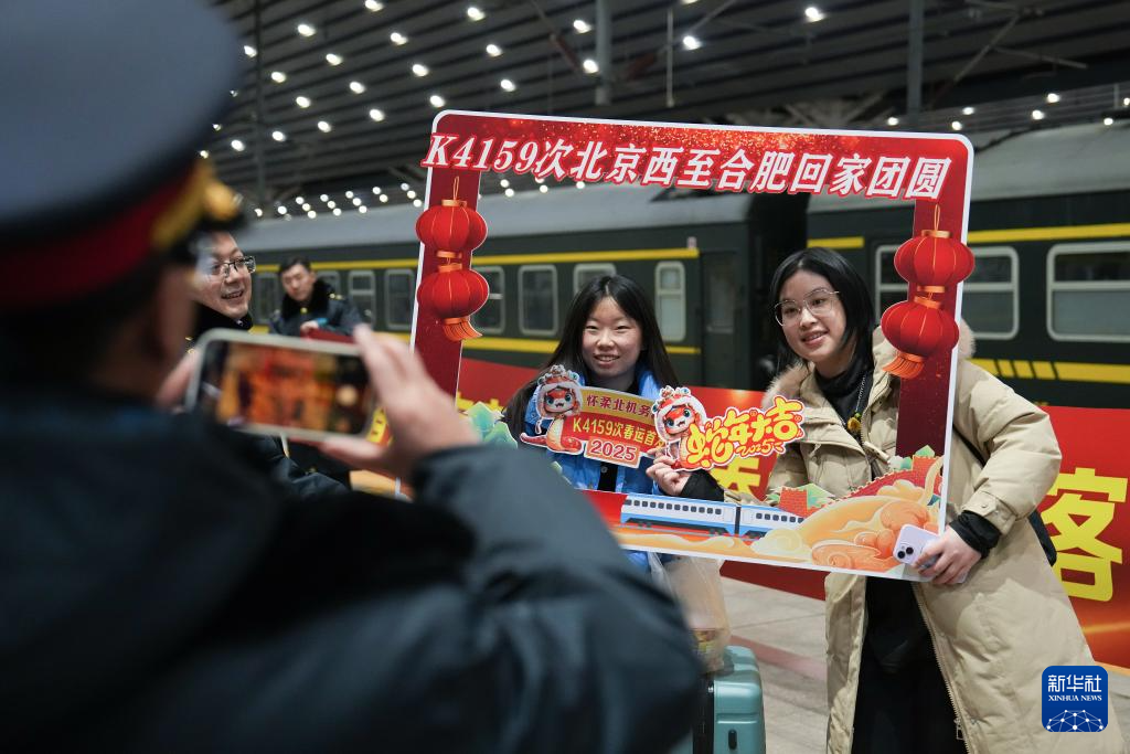 1月14日0時02分,北京西至合肥K4159次列車緩緩駛出北京西站。這是北京地區開出的2025年春運首趟旅客列車。