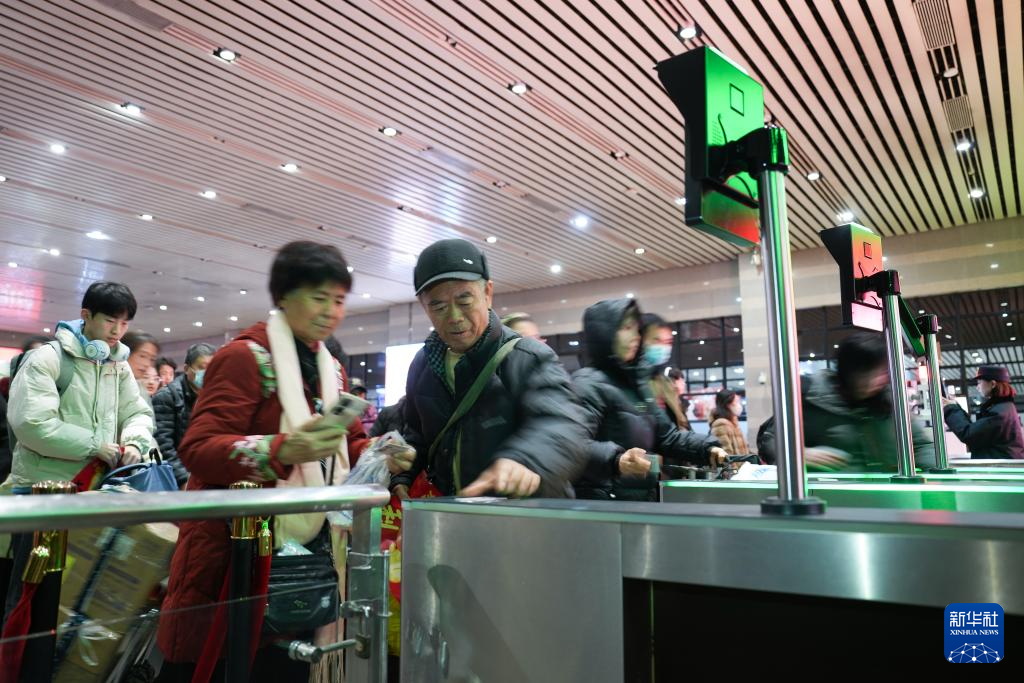 在北京西站,乘坐北京西至合肥的K4159次列車的旅客在檢票進站(1月13日攝)。這趟列車于1月14日0時02分發車,是北京地區開出的2025年春運首趟旅客列車。