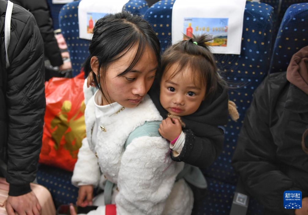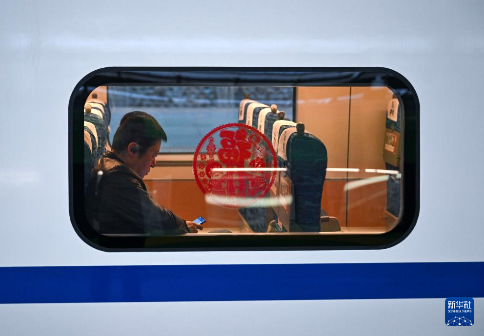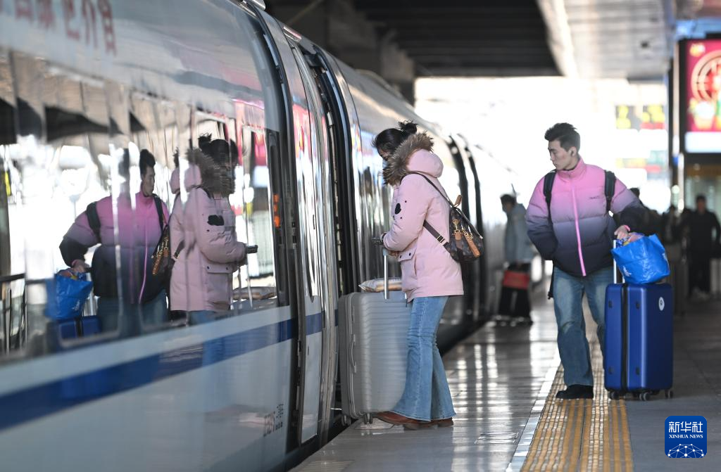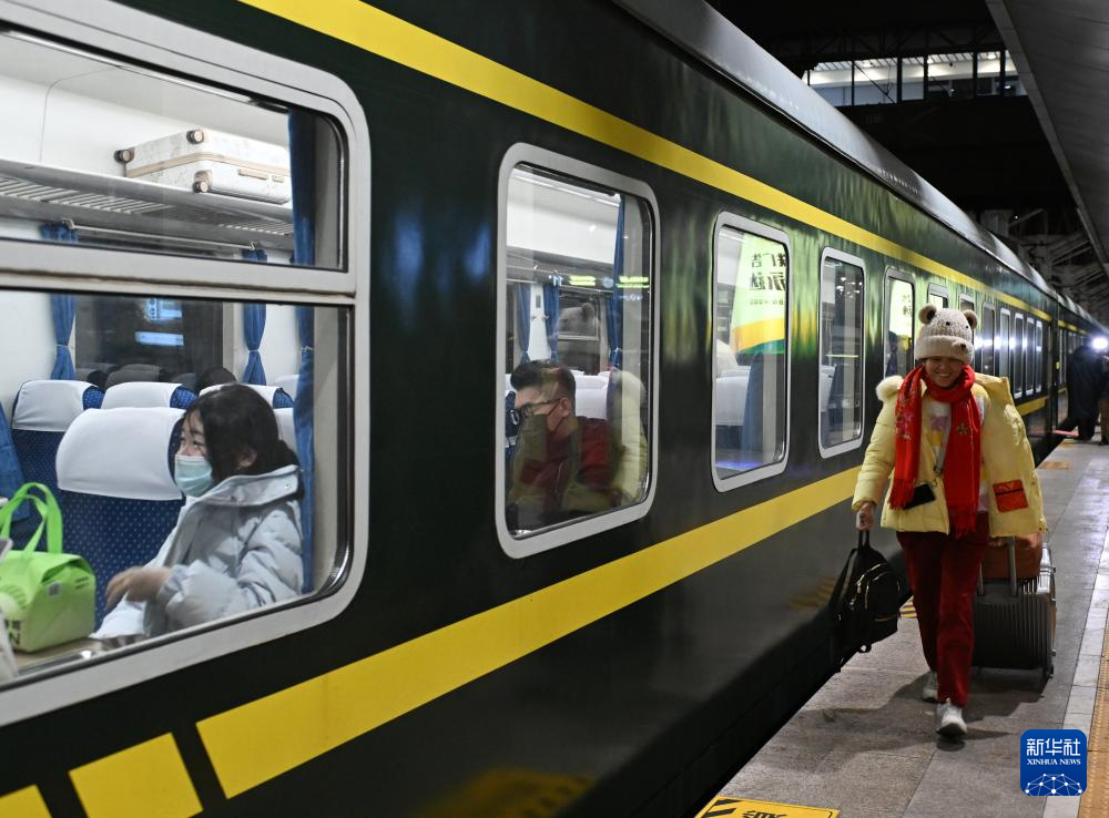 1月14日,乘客乘坐西寧至呼和浩特東的D2822次動車組列車出發。