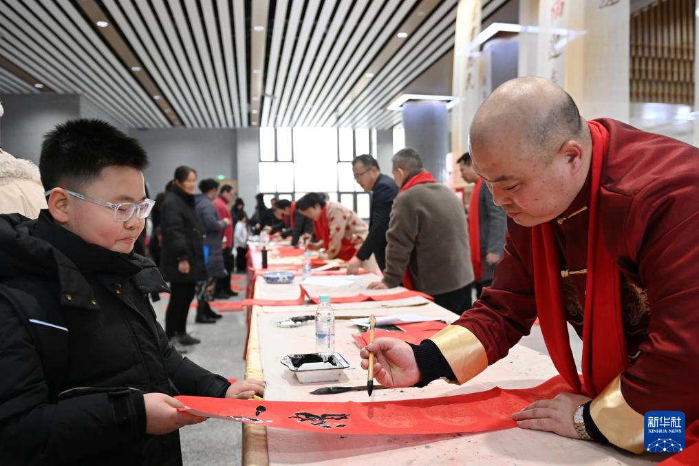 1月14日,在西安站春運送福活動上,書法家為旅客免費書寫春聯。