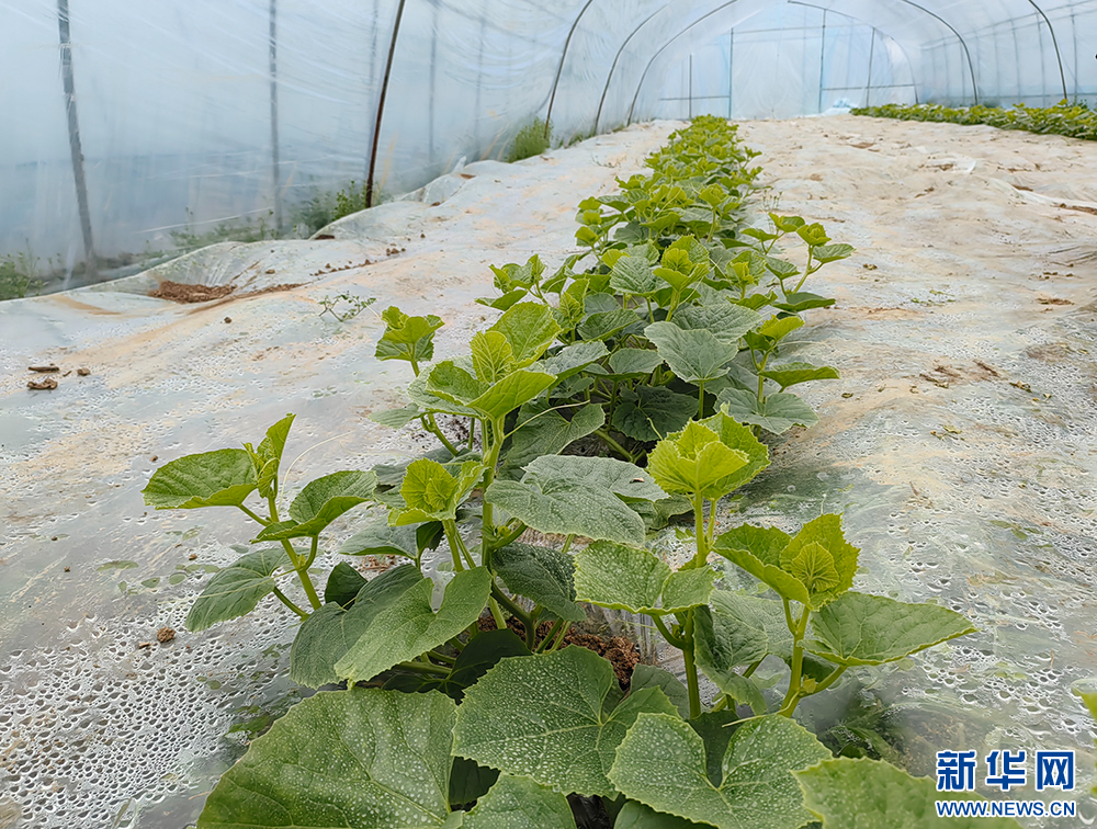 大棚內(nèi)瓜秧長勢正好。新華網(wǎng)劉曉麗攝