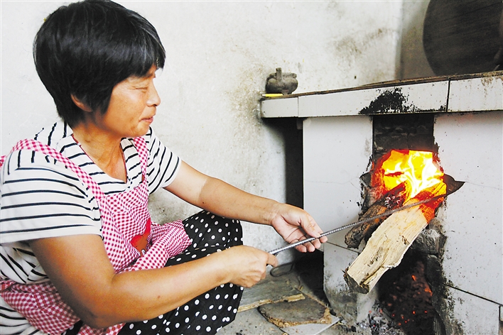 妻子打下手忙著刷鍋、添水、燒火,程元啟則準備下一鍋的材料,清洗提前揀好的大紅棗,用網勺淘米。“平時每天煮一鍋,臨近端午節,買粽子的多,每天要煮四鍋。”程元啟一邊忙碌一邊和記者搭話。