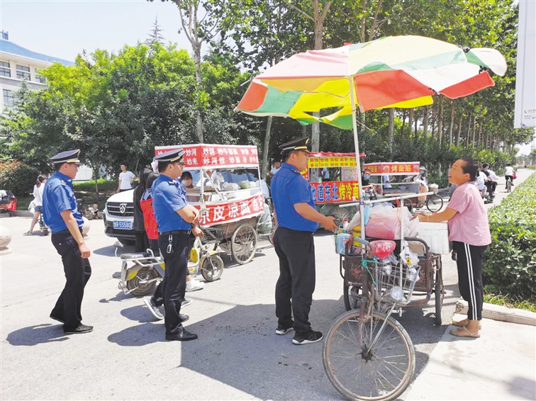 炎炎夏日,酷暑難當。7月6日臨近午時,牡丹區綜合行政執法大隊五中隊中隊長吳建彪帶領隊員,再次來到其負責的牡丹區長城學校片區進行市容環境治理。“高考期間不要再來了,這次考試是關系孩子一生的大事,大家要好好配合。”面對流動攤販,吳建彪耐心勸說道。
