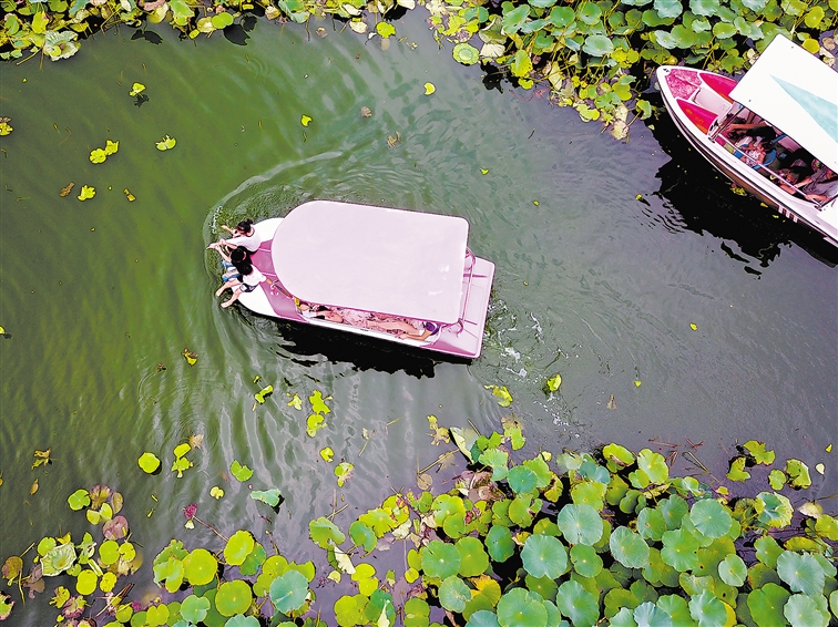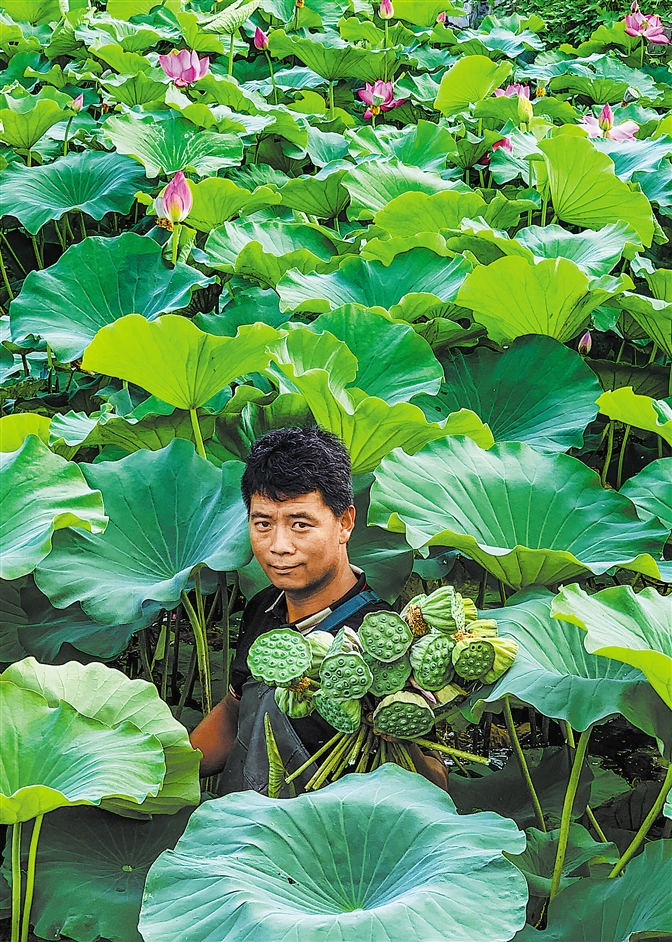 “目前不少企業大力推進蓮藕產業發展,蓮藕可以加工成蓮藕罐頭;干荷葉、干蓮蓬等制成干花擺件;蓮子制成蓮子手串;荷葉還可以制成荷葉茶,荷花產品的效益大幅提高。”萬畝荷塘水產種植養殖專業合作社總經理張哲瑜告訴記者,如今,以蓮藕食品、荷葉茶、荷花茶為主產品,拉長了農產品的產業鏈,提高了農產品的附加值,帶動了鄉村振興建設。