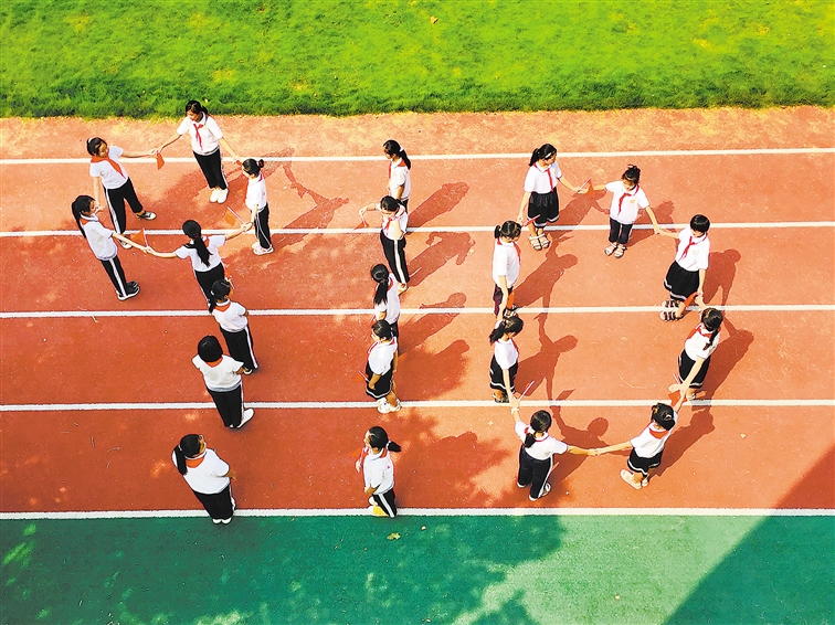 在教師節(jié)這個特殊的日子里,何樓辦事處云菏小學(xué)的學(xué)生們在操場上組成“9、10”圖案歡慶教師節(jié)。