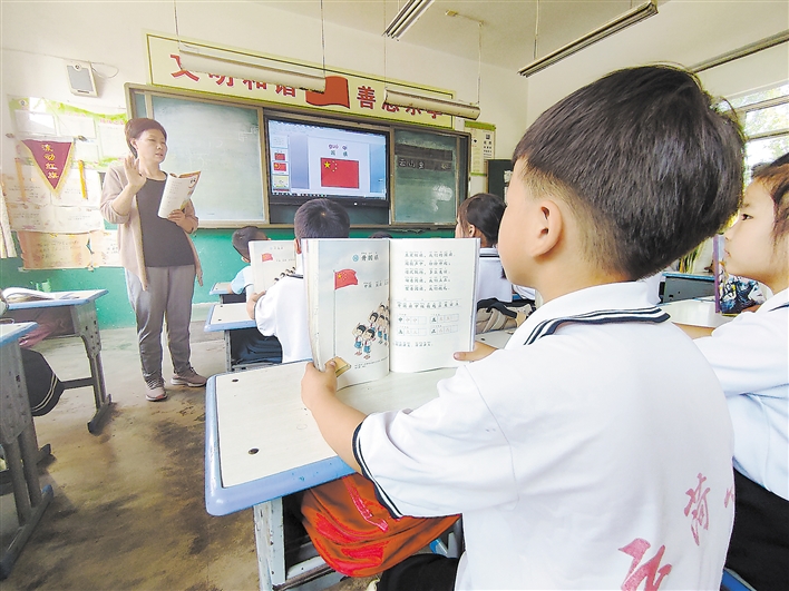 圖為 9月9日,牡丹區(qū)南苑小學(xué)英語教師邊麗亞正在通過“手勢教學(xué)法”上英語課。