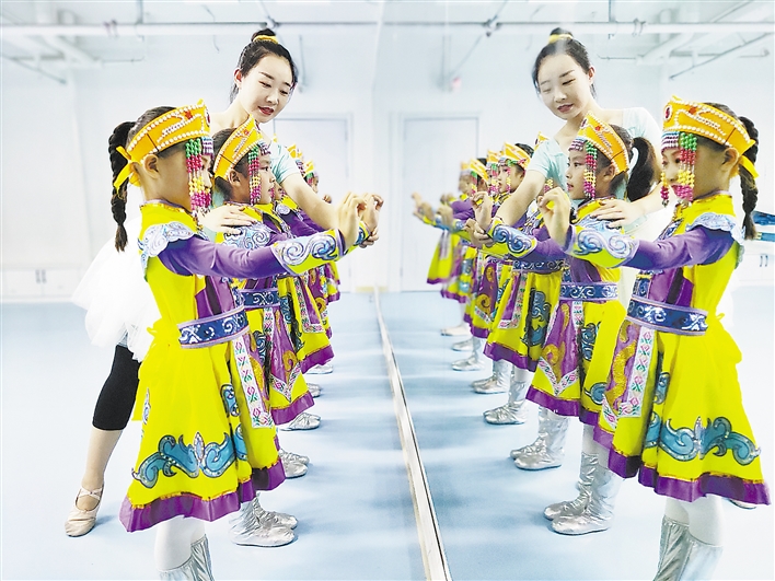 舞蹈老師蔡中迪正在斯達特舞蹈培訓(xùn)課上對同學(xué)們進行舞姿手語訓(xùn)練。