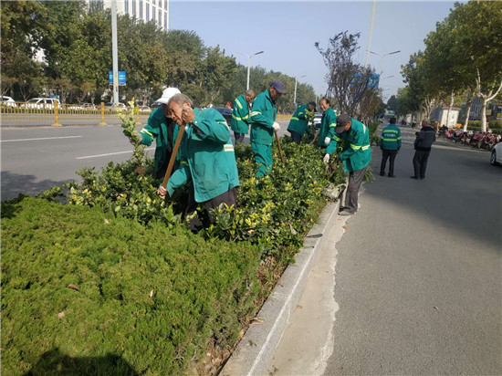 10月19日,菏澤開發區園林處的工人正在緊張有序地工作,轄區內的公園和主要街道呈現出熱火朝天的繁忙景象。園林工人在市長江路、和平路等路段栽植了麥冬、石楠,在天香公園、新天地公園、林蔭廣場等地栽植了雪松、月季等,在市南京路、上海路等路段栽植了櫻花樹和木瓜樹。