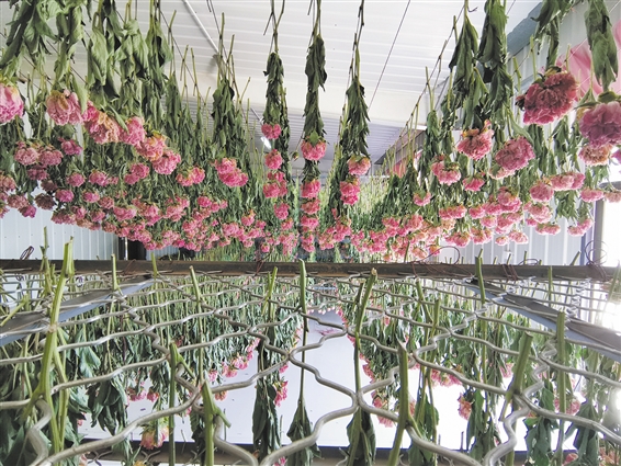 “據我了解,我們是國內首家進行大規模牡丹、芍藥干花生產的?!壁w孝慶自豪地說,“目前正在加工生產的2萬余枝牡丹、芍藥干花,九成保持自然色調,一小部分出于實驗目的進行了著色,這樣做的目的是為了讓花色更全面。”