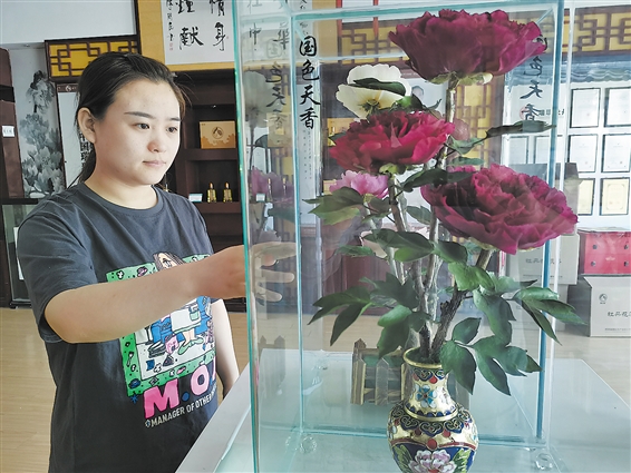 采集鮮花后,要進行干燥處理,再進行著色與定形。工作人員介紹,牡丹花在干燥的過程中,顏色會在不同程度上出現變化,或退色或變色。這時,要在花瓣或枝葉上進行著色,從而保持原花型、花色和鮮度。著色后的干花,可單插或簇插于花瓶等器皿中,也可裝入玻璃框中,制成裝飾畫、裝飾匾。