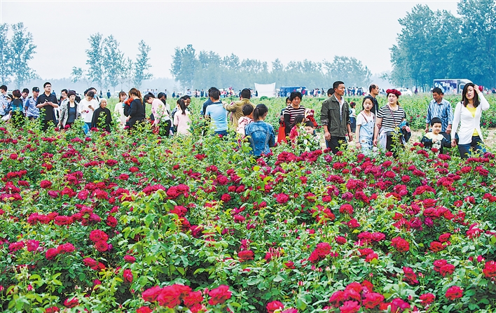該鎮(zhèn)建有萬畝玫瑰主園區(qū)一處,玫瑰高端連棟溫室一處,育有110多個(gè)優(yōu)良玫瑰品種,是我國(guó)長(zhǎng)江以北唯一的鮮切花玫瑰大棚培育基地。從事玫瑰產(chǎn)業(yè)人員1.3萬余人,從業(yè)農(nóng)戶4000多戶,種植面積達(dá)1.3萬畝,畝均收益8000元以上,年加工各類玫瑰產(chǎn)品9000噸,銷售收入2.8億元。