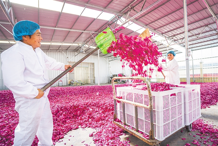 2019年,黃店鎮(zhèn)成功注冊(cè)“定陶玫瑰”國(guó)家地理標(biāo)志證明商標(biāo),完成玫瑰深加工產(chǎn)業(yè)項(xiàng)目改造提升,進(jìn)一步保護(hù)玫瑰特色產(chǎn)品,提高玫瑰產(chǎn)品附加值,助推玫瑰特色小鎮(zhèn)發(fā)展。目前,全鎮(zhèn)已形成集種植、加工、存儲(chǔ)、銷售等為一體的玫瑰產(chǎn)業(yè)體系,玫瑰種植基地的吳莊、朱莊、何莊共計(jì)133戶貧困戶279人,均已脫貧,真正使玫瑰成為農(nóng)民的“致富花”。