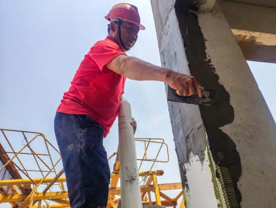 “每天6點(diǎn)開工。”三合村村臺(tái)工地項(xiàng)目經(jīng)理謝保記說(shuō),為了趕上因疫情耽誤的工期,他們需要盡快保質(zhì)保量完成剩余的安居房的屋瓦鋪裝、防水和外墻保溫工作。