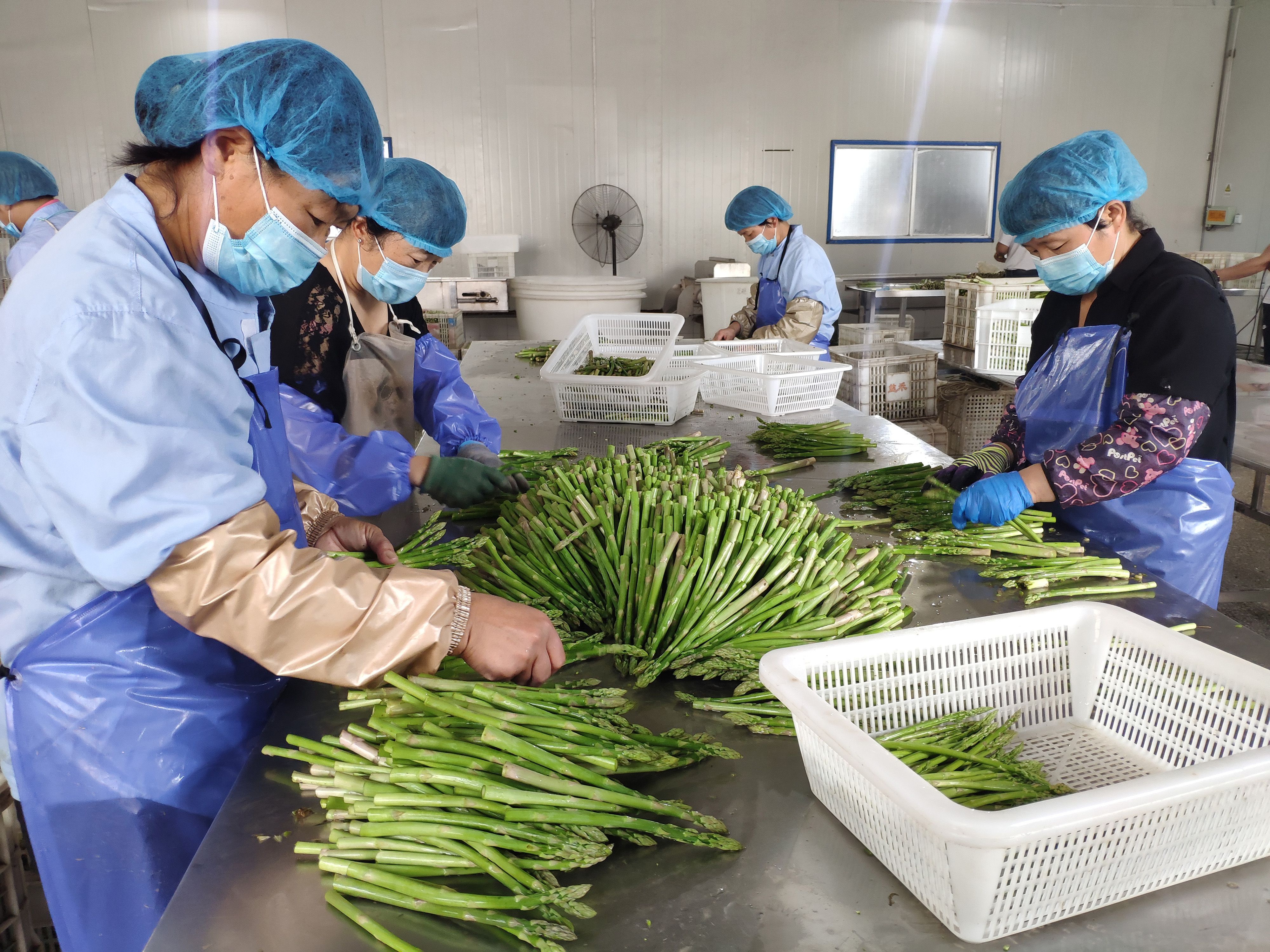 6月27日,在市開發區陳集鎮天中山藥合作社的蘆筍加工車間內,裝卸、分揀、切割、清洗、包裝……工人們在流水線上緊張作業,目前日產量10噸左右,確保每天的上市蘆筍保質保量。近年來,該合作社利用現有冷庫優勢,以產業帶動脫貧,從蘆筍的收購、倉儲,到深加工和銷售,實現了互聯網電商與農業產業鏈的連接,帶動100余名村民及貧困戶就業增收。
