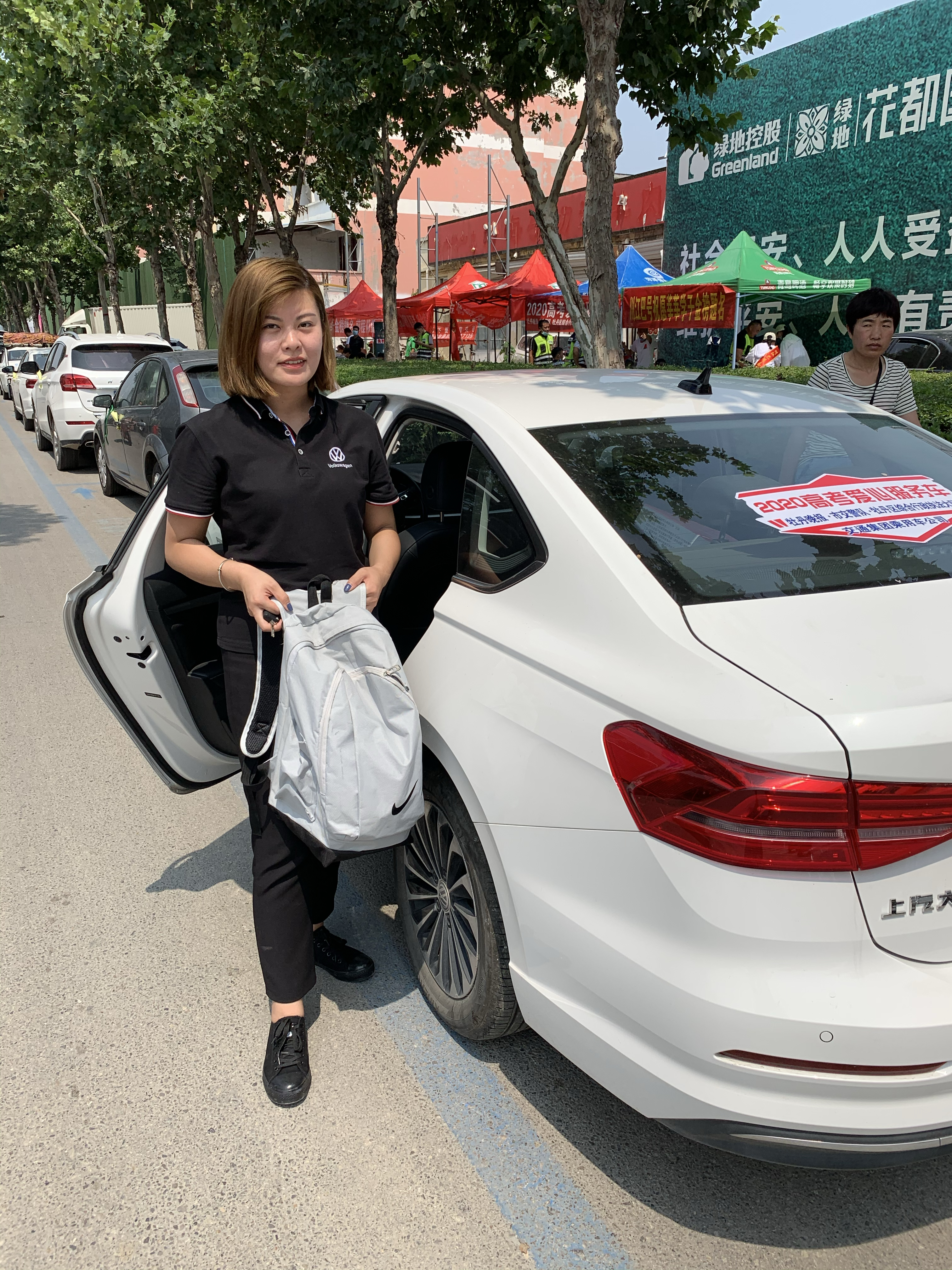 由于站點內前來休息的家長眾多,接過該考生的雙肩包,她立即將包鎖入車內進行保管。