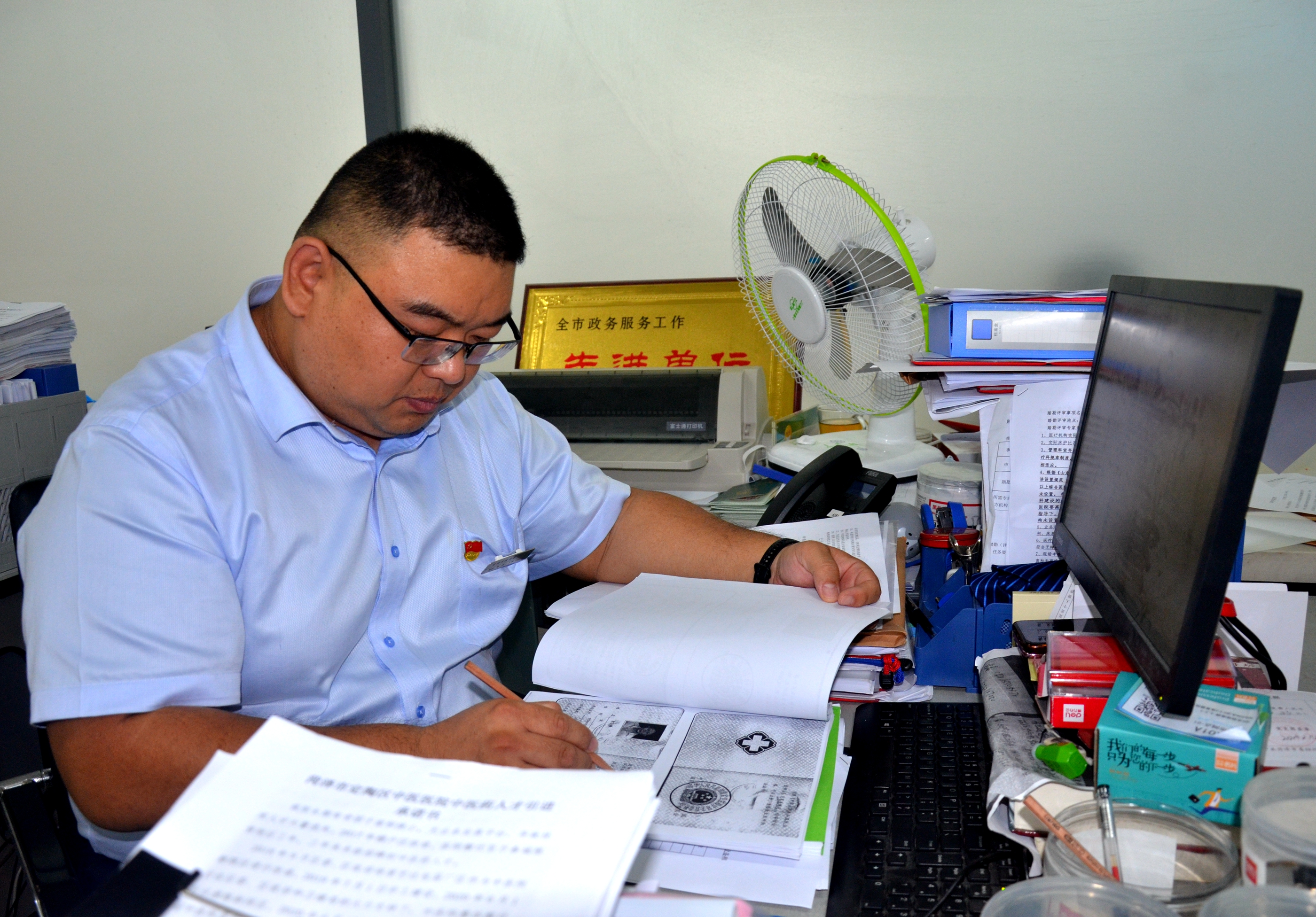 去年3月,在全市的機構改革中,高欣成為市行政審批局衛(wèi)生健康科一名審批戰(zhàn)線上的新兵。面對新的工作崗位和完全陌生的業(yè)務,他積極鉆研,研究文件,請教同事,白天工作忙就晚上學,上班沒空就周末學。功夫不負有心人,不到兩個月時間,他就成為科室業(yè)務骨干。