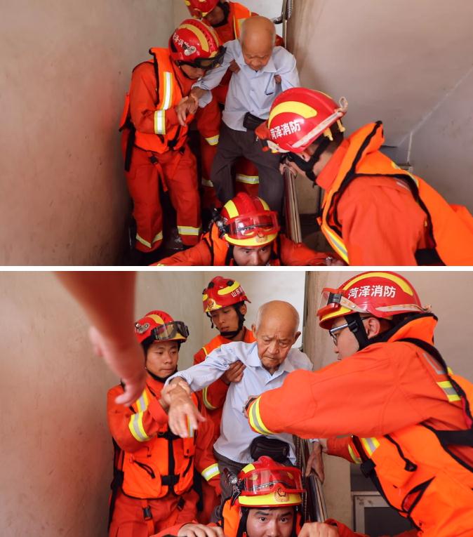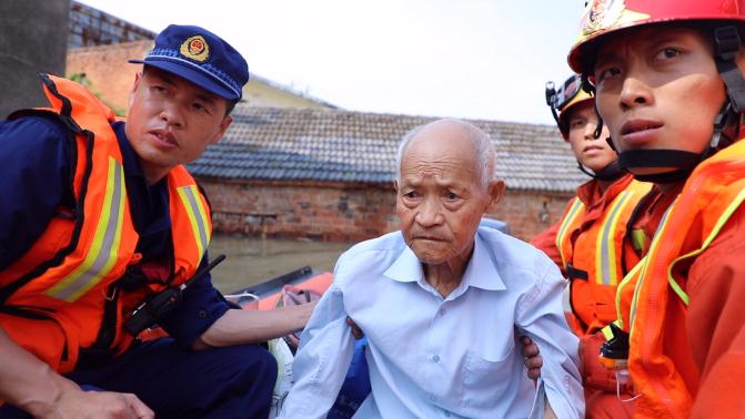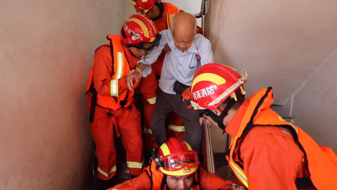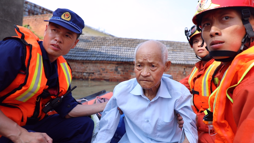 7月20日下午,在安徽全椒縣古河鎮(zhèn),一名90多歲的老人被困家中,從此處經(jīng)過的山東菏澤增援隊的消防員們聽到老人呼救聲后,立馬前往救援。
