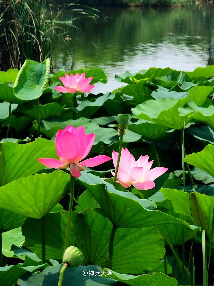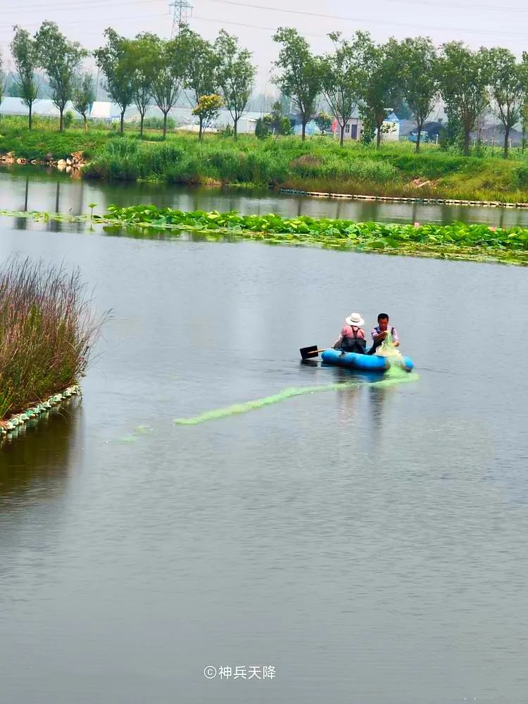 河水清明,蘆葦、香蒲、荷花、浮萍等水生植物繁密茂盛,鷺鷥起落,野鴨弄波,游魚戲水,風光宜人。