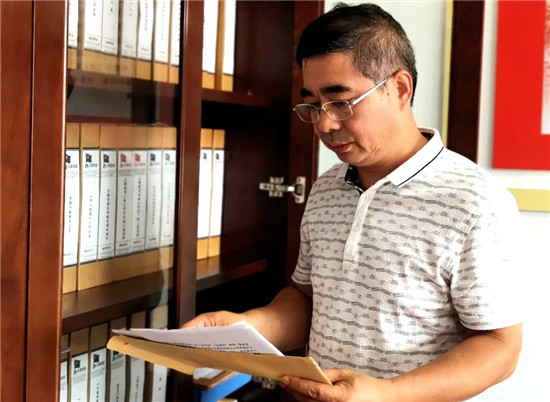 侯偉正在查閱業(yè)務(wù)相關(guān)文件