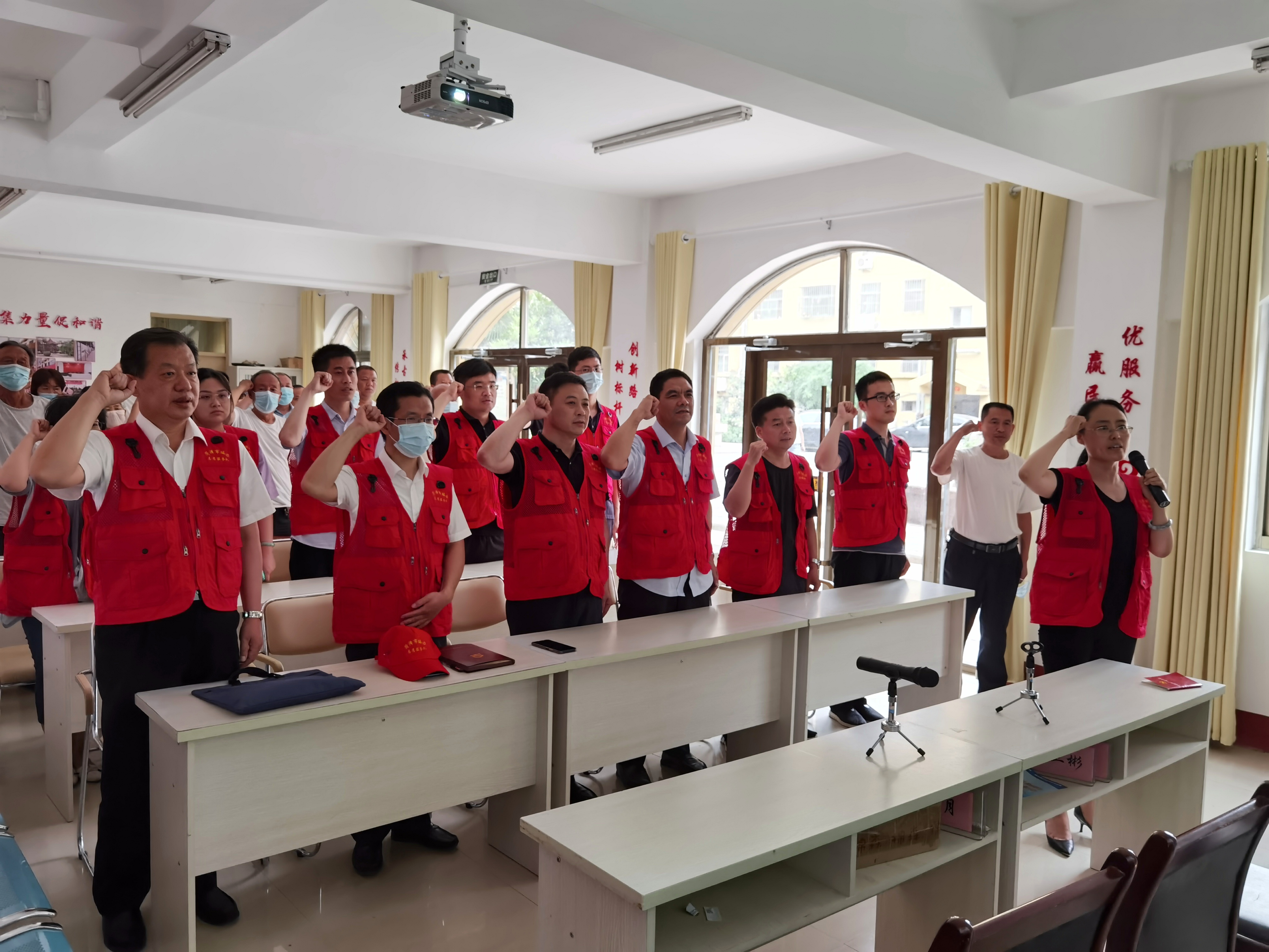 劉佩佩(右前一)到雙聯(lián)雙創(chuàng)社區(qū),與黨員一起重溫入黨誓詞