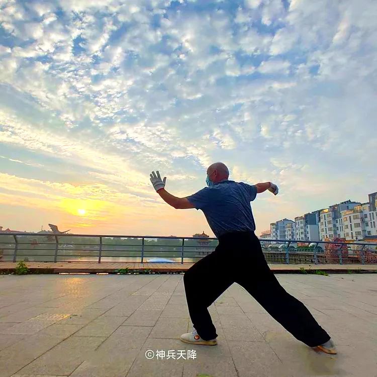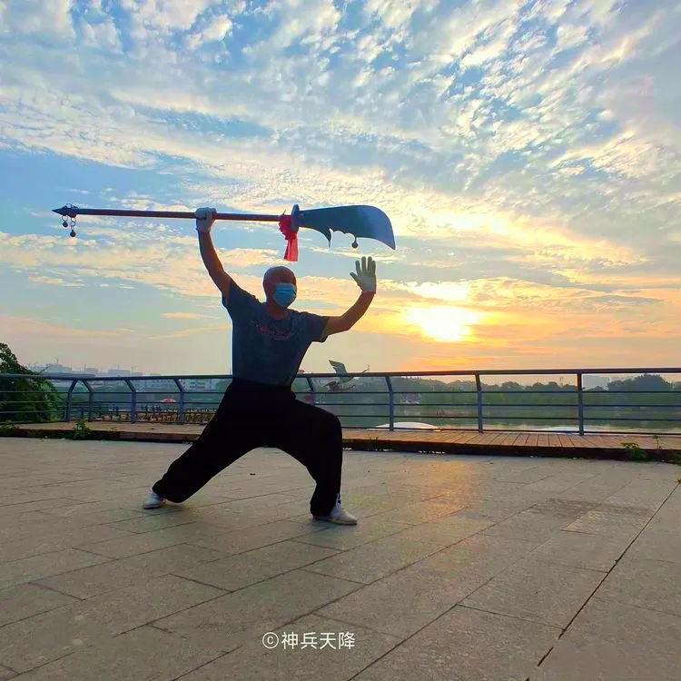 湖畔晨練的老人。大刀揮舞,虎虎生風。