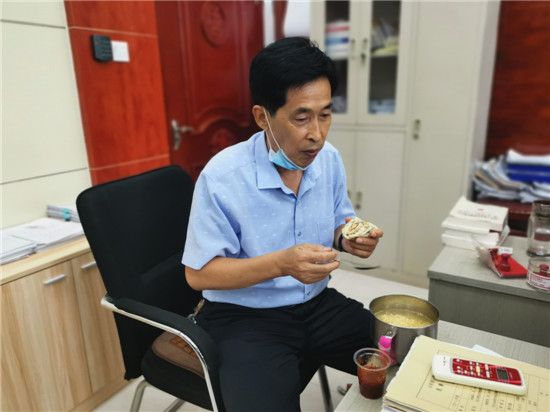 當天,臨近下班時間,程大銀還和助理陳參參一起探討著案情。這段時間,手頭還有100多件案子,開庭排期滿滿當當,平時身體瘦弱、加班熬夜、飲食不規律的程大銀已連續加班一周了。同事見他經常加班加點工作,都勸他歇歇,程大銀卻說,案子可不等人,得趕緊辦完。疫情期間,龍堌法庭在全市率先利用互聯網開庭,程大銀吃住在法庭,一碗泡面就是一頓飯,這也為他的胃病埋下了隱患。