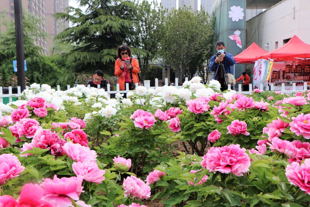 曹州牡丹園內(nèi),游客正在觀賞拍攝牡丹。(圖片由受訪者提供)
