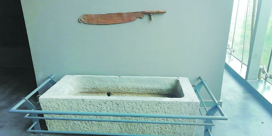 在單縣湖西紅色教育基地館內展示的眾多抗戰文物中,一口碩大的石槽顯得彌足珍貴。