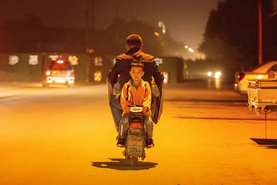 不知道有多少個夜晚李彥朝叫醒熟睡的兒子騎著他那輛電瓶車走在這條馬路上,當我按下這個快門眼睛濕潤啦。我熟悉的鄆城扶貧辦的史主任、吳斌副主任、孫洋沫也有著和李彥朝一樣一樣的故事,我以此組照片向鄆城扶貧辦致敬!