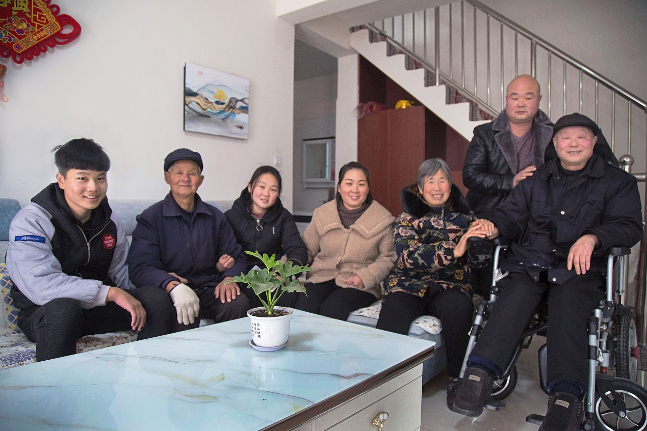 因殘致貧的大邢莊村臺、融合社區鞏莊村鞏恃謙,祖孫四代2021年1月24日春節、小別墅里的開心全家福。