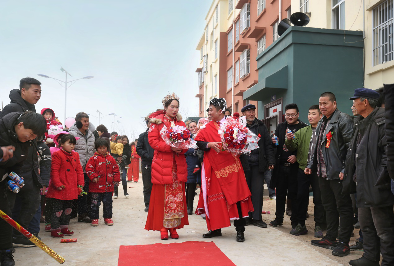 2019年1月29號左營鄉左南社區。灘區居民搬遷到社區之后,社區里的未婚小伙竟成了“搶手貨”,別村的姑娘爭要嫁過來,還有幾個老光棍也迎娶了自己的新娘。