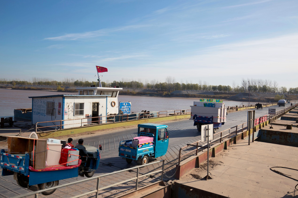 2019年11月25號孤懸黃河對岸的董口鎮魚骨、趙李營村民跨越黃河浮橋、異地搬家至董口鎮政府所在地--黃河社區。