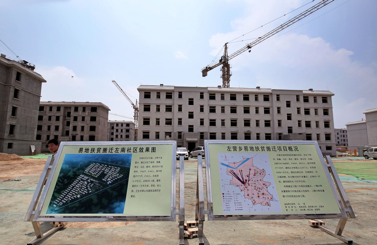 2019年10月18日建設中的安莊村臺。舊城鎮4個社區村臺,占地面積2859.7畝,建設5335套社區住房及相關配套公建設施,總建筑面積約705195.2平方米,總投資136736.81萬元,將安置灘區村民17771人。