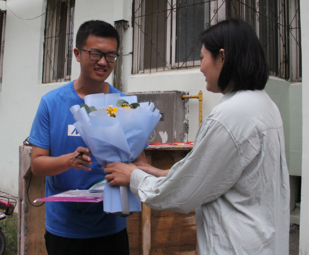 隨后,牡丹晚報全媒體記者隨梁濤一起來到位于市華安路的怡海花園小區。考生李子昭和他的媽媽已經在樓下單元門口等待。在核對李子昭的身份證和準考證之后,梁濤將錄取通知書交給了李子昭。中國郵政速遞物流股份有限公司菏澤市分公司還特意為李子昭準備了鮮花。夢想達成,這個18歲的少年臉上笑容燦爛。