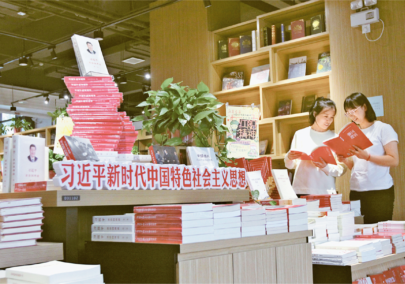黨確立習近平同志黨中央的核心、全黨的核心地位,確立習近平新時代中國特色社會主義思想的指導地位,反映了全黨全軍全國各族人民共同心愿,對新時代黨和國家事業發展、對推進中華民族偉大復興歷史進程具有決定性意義。圖為2021年10月4日,河南省焦作市博愛縣新華書店里,讀者在閱讀習近平新時代中國特色社會主義思想相關書籍。 中新社發 程全/攝